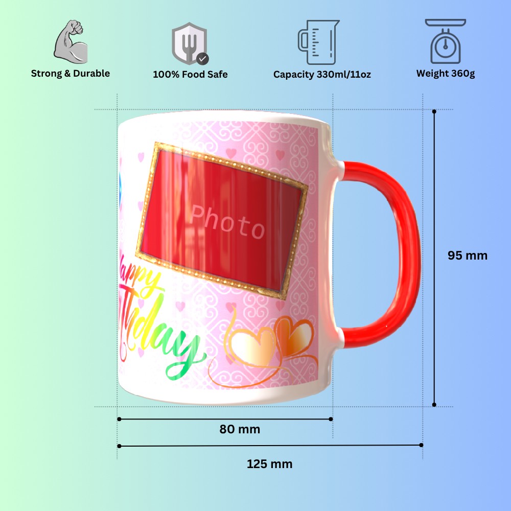 Celebrate special moments with our TPD25RHM2 Red Round Handle Mug, thoughtfully designed for birthday surprises. This elegant and sturdy ceramic mug is perfect for showcasing your unique memories with custom photo and text printing options. Whether it's a heartfelt birthday wish, an anniversary date, or a fun cartoon for kids, your designs will shine on this glossy finish. The ergonomic round handle ensures a comfortable grip, making it a daily favorite for sipping tea, coffee, or hot chocolate. Ideal for gifting or daily use, our mugs are microwave and dishwasher safe, ensuring long-lasting prints and durability. Customize it with your artwork or a favorite quote to turn a simple mug into a cherished keepsake. Make every sip memorable with a gift that blends function, creativity, and emotion. Order now and create a personalized treasure that delights every time!