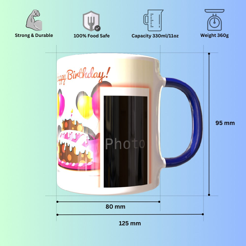 Celebrate special moments with our TPD7RHM5 Blue Round Handle Mug, thoughtfully designed for birthday surprises. This elegant and sturdy ceramic mug is perfect for showcasing your unique memories with custom photo and text printing options. Whether it's a heartfelt birthday wish, an anniversary date, or a fun cartoon for kids, your designs will shine on this glossy finish. The ergonomic round handle ensures a comfortable grip, making it a daily favorite for sipping tea, coffee, or hot chocolate. Ideal for gifting or daily use, our mugs are microwave and dishwasher safe, ensuring long-lasting prints and durability. Customize it with your artwork or a favorite quote to turn a simple mug into a cherished keepsake. Make every sip memorable with a gift that blends function, creativity, and emotion. Order now and create a personalized treasure that delights every time!