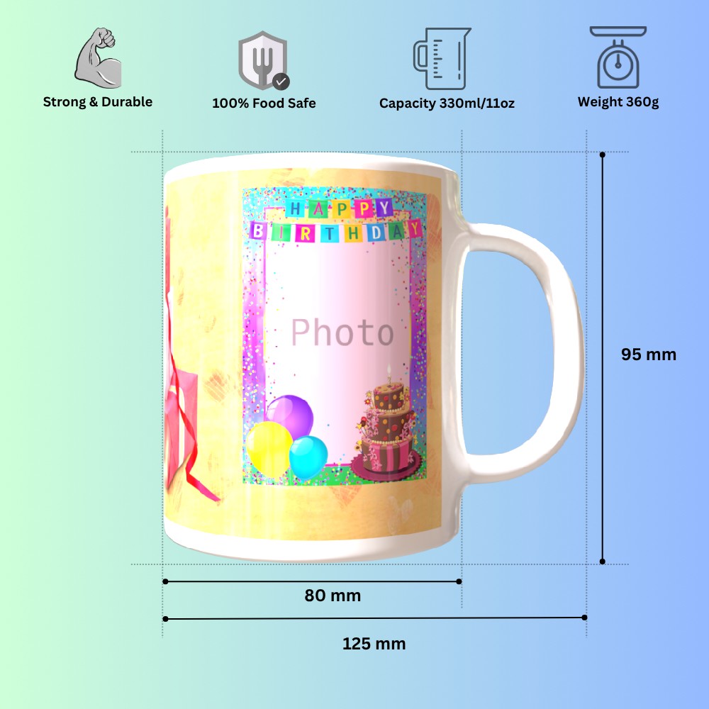 Celebrate special moments with our TPD27RHM1 White Round Handle Mug, thoughtfully designed for birthday surprises. This elegant and sturdy ceramic mug is perfect for showcasing your unique memories with custom photo and text printing options. Whether it's a heartfelt birthday wish, an anniversary date, or a fun cartoon for kids, your designs will shine on this glossy finish. The ergonomic round handle ensures a comfortable grip, making it a daily favorite for sipping tea, coffee, or hot chocolate. Ideal for gifting or daily use, our mugs are microwave and dishwasher safe, ensuring long-lasting prints and durability. Customize it with your artwork or a favorite quote to turn a simple mug into a cherished keepsake. Make every sip memorable with a gift that blends function, creativity, and emotion. Order now and create a personalized treasure that delights every time!
