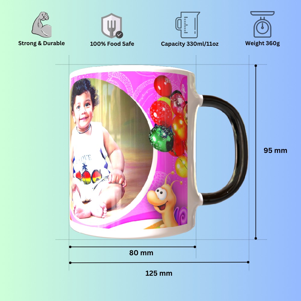 Celebrate special moments with our TPD53RHM11 Black Round Handle Mug, thoughtfully designed for kids surprises. This elegant and sturdy ceramic mug is perfect for showcasing your unique memories with custom photo and text printing options. Whether it's a heartfelt birthday wish, an anniversary date, or a fun cartoon for kids, your designs will shine on this glossy finish. The ergonomic round handle ensures a comfortable grip, making it a daily favorite for sipping tea, coffee, or hot chocolate. Ideal for gifting or daily use, our mugs are microwave and dishwasher safe, ensuring long-lasting prints and durability. Customize it with your artwork or a favorite quote to turn a simple mug into a cherished keepsake. Make every sip memorable with a gift that blends function, creativity, and emotion. Order now and create a personalized treasure that delights every time!