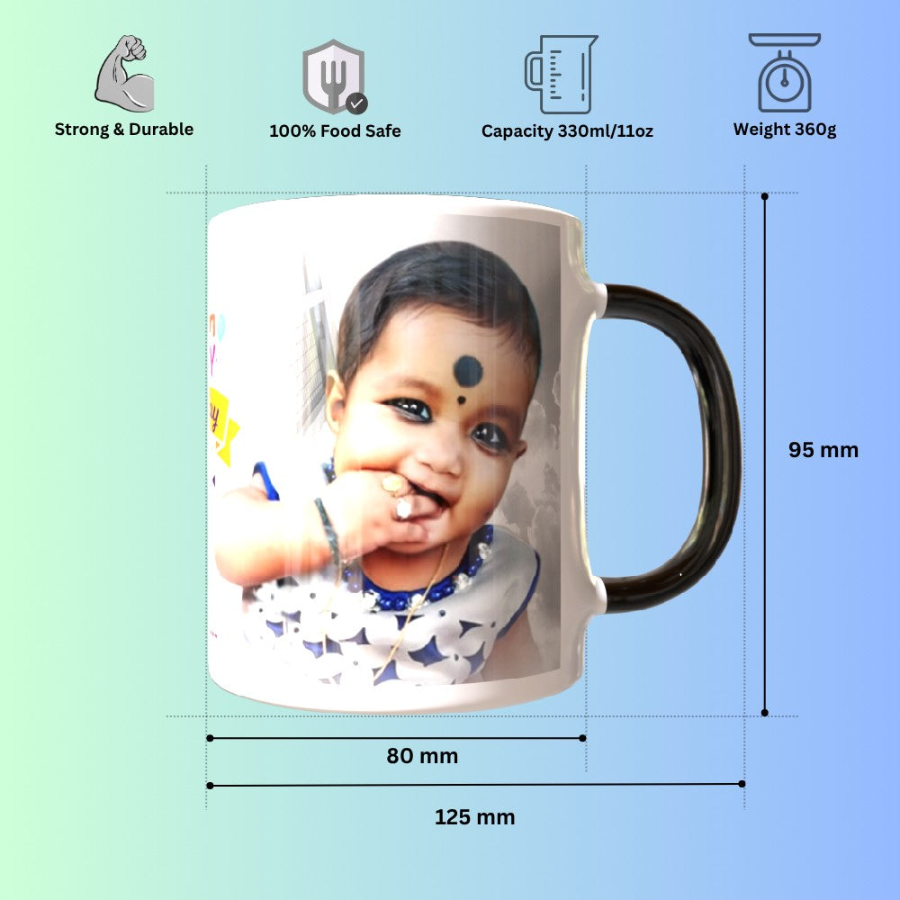 Celebrate special moments with our TPD65RHM11 Black Round Handle Mug, thoughtfully designed for kids surprises. This elegant and sturdy ceramic mug is perfect for showcasing your unique memories with custom photo and text printing options. Whether it's a heartfelt birthday wish, an anniversary date, or a fun cartoon for kids, your designs will shine on this glossy finish. The ergonomic round handle ensures a comfortable grip, making it a daily favorite for sipping tea, coffee, or hot chocolate. Ideal for gifting or daily use, our mugs are microwave and dishwasher safe, ensuring long-lasting prints and durability. Customize it with your artwork or a favorite quote to turn a simple mug into a cherished keepsake. Make every sip memorable with a gift that blends function, creativity, and emotion. Order now and create a personalized treasure that delights every time!