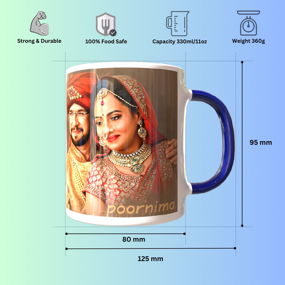 Celebrate special moments with our TPD83RHM5 Navy Blue Round Handle Mug, thoughtfully designed for anniversary surprises. This elegant and sturdy ceramic mug is perfect for showcasing your unique memories with custom photo and text printing options. Whether it's a heartfelt birthday wish, an anniversary date, or a fun cartoon for kids, your designs will shine on this glossy finish. The ergonomic round handle ensures a comfortable grip, making it a daily favorite for sipping tea, coffee, or hot chocolate. Ideal for gifting or daily use, our mugs are microwave and dishwasher safe, ensuring long-lasting prints and durability. Customize it with your artwork or a favorite quote to turn a simple mug into a cherished keepsake. Make every sip memorable with a gift that blends function, creativity, and emotion. Order now and create a personalized treasure that delights every time!