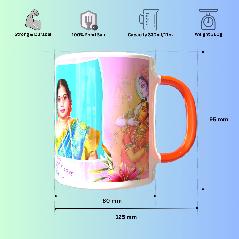 Celebrate special moments with our TPD108RHM3 Orange Round Handle Mug, thoughtfully designed for anniversary surprises. This elegant and sturdy ceramic mug is perfect for showcasing your unique memories with custom photo and text printing options. Whether it's a heartfelt birthday wish, an anniversary date, or a fun cartoon for kids, your designs will shine on this glossy finish. The ergonomic round handle ensures a comfortable grip, making it a daily favorite for sipping tea, coffee, or hot chocolate. Ideal for gifting or daily use, our mugs are microwave and dishwasher safe, ensuring long-lasting prints and durability. Customize it with your artwork or a favorite quote to turn a simple mug into a cherished keepsake. Make every sip memorable with a gift that blends function, creativity, and emotion. Order now and create a personalized treasure that delights every time!