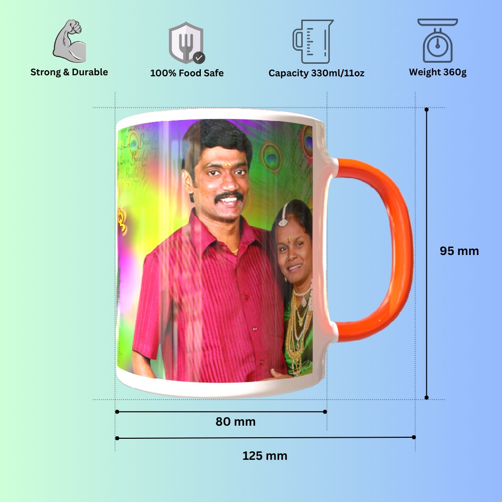 Celebrate special moments with our TPD110RHM3 Orange Round Handle Mug, thoughtfully designed for anniversary surprises. This elegant and sturdy ceramic mug is perfect for showcasing your unique memories with custom photo and text printing options. Whether it's a heartfelt birthday wish, an anniversary date, or a fun cartoon for kids, your designs will shine on this glossy finish. The ergonomic round handle ensures a comfortable grip, making it a daily favorite for sipping tea, coffee, or hot chocolate. Ideal for gifting or daily use, our mugs are microwave and dishwasher safe, ensuring long-lasting prints and durability. Customize it with your artwork or a favorite quote to turn a simple mug into a cherished keepsake. Make every sip memorable with a gift that blends function, creativity, and emotion. Order now and create a personalized treasure that delights every time!