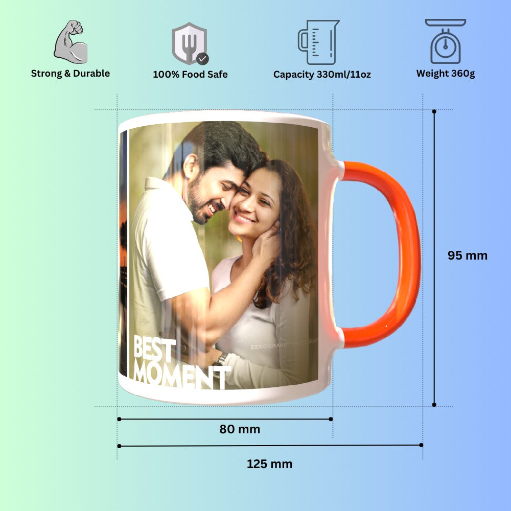 Celebrate special moments with our TPD81RHM3 Orange Round Handle Mug, thoughtfully designed for anniversary surprises. This elegant and sturdy ceramic mug is perfect for showcasing your unique memories with custom photo and text printing options. Whether it's a heartfelt birthday wish, an anniversary date, or a fun cartoon for kids, your designs will shine on this glossy finish. The ergonomic round handle ensures a comfortable grip, making it a daily favorite for sipping tea, coffee, or hot chocolate. Ideal for gifting or daily use, our mugs are microwave and dishwasher safe, ensuring long-lasting prints and durability. Customize it with your artwork or a favorite quote to turn a simple mug into a cherished keepsake. Make every sip memorable with a gift that blends function, creativity, and emotion. Order now and create a personalized treasure that delights every time!