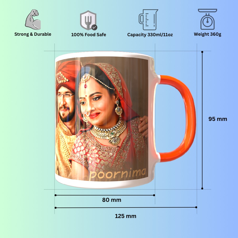 Celebrate special moments with our TPD83RHM3 Orange Round Handle Mug, thoughtfully designed for anniversary surprises. This elegant and sturdy ceramic mug is perfect for showcasing your unique memories with custom photo and text printing options. Whether it's a heartfelt birthday wish, an anniversary date, or a fun cartoon for kids, your designs will shine on this glossy finish. The ergonomic round handle ensures a comfortable grip, making it a daily favorite for sipping tea, coffee, or hot chocolate. Ideal for gifting or daily use, our mugs are microwave and dishwasher safe, ensuring long-lasting prints and durability. Customize it with your artwork or a favorite quote to turn a simple mug into a cherished keepsake. Make every sip memorable with a gift that blends function, creativity, and emotion. Order now and create a personalized treasure that delights every time!