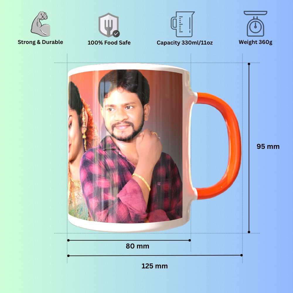 Celebrate special moments with our TPD87RHM3 Orange Round Handle Mug, thoughtfully designed for anniversary surprises. This elegant and sturdy ceramic mug is perfect for showcasing your unique memories with custom photo and text printing options. Whether it's a heartfelt birthday wish, an anniversary date, or a fun cartoon for kids, your designs will shine on this glossy finish. The ergonomic round handle ensures a comfortable grip, making it a daily favorite for sipping tea, coffee, or hot chocolate. Ideal for gifting or daily use, our mugs are microwave and dishwasher safe, ensuring long-lasting prints and durability. Customize it with your artwork or a favorite quote to turn a simple mug into a cherished keepsake. Make every sip memorable with a gift that blends function, creativity, and emotion. Order now and create a personalized treasure that delights every time!