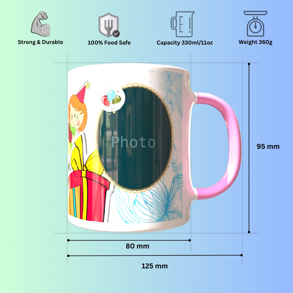Celebrate special moments with our TPD29RHM10 Pink Round Handle Mug, thoughtfully designed for birthday surprises. This elegant and sturdy ceramic mug is perfect for showcasing your unique memories with custom photo and text printing options. Whether it's a heartfelt birthday wish, an anniversary date, or a fun cartoon for kids, your designs will shine on this glossy finish. The ergonomic round handle ensures a comfortable grip, making it a daily favorite for sipping tea, coffee, or hot chocolate. Ideal for gifting or daily use, our mugs are microwave and dishwasher safe, ensuring long-lasting prints and durability. Customize it with your artwork or a favorite quote to turn a simple mug into a cherished keepsake. Make every sip memorable with a gift that blends function, creativity, and emotion. Order now and create a personalized treasure that delights every time!