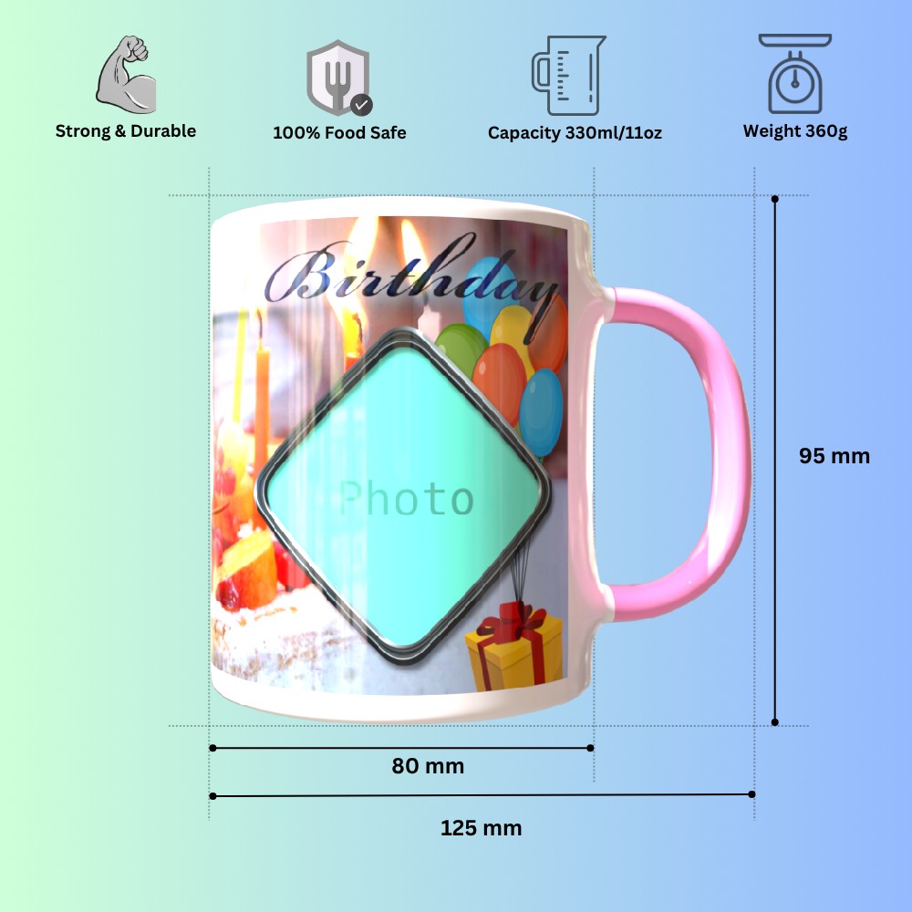 Celebrate special moments with our TPD2RHM10 Pink Round Handle Mug, thoughtfully designed for birthday surprises. This elegant and sturdy ceramic mug is perfect for showcasing your unique memories with custom photo and text printing options. Whether it's a heartfelt birthday wish, an anniversary date, or a fun cartoon for kids, your designs will shine on this glossy finish. The ergonomic round handle ensures a comfortable grip, making it a daily favorite for sipping tea, coffee, or hot chocolate. Ideal for gifting or daily use, our mugs are microwave and dishwasher safe, ensuring long-lasting prints and durability. Customize it with your artwork or a favorite quote to turn a simple mug into a cherished keepsake. Make every sip memorable with a gift that blends function, creativity, and emotion. Order now and create a personalized treasure that delights every time!