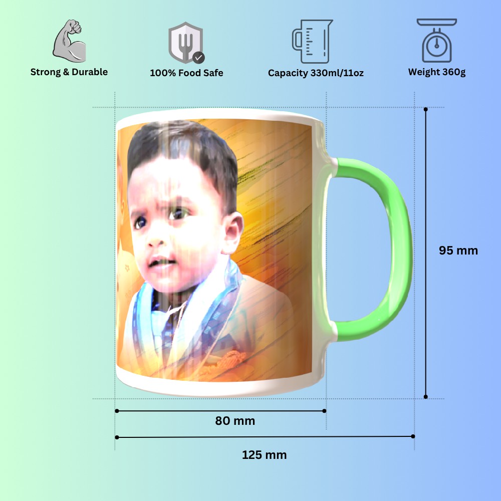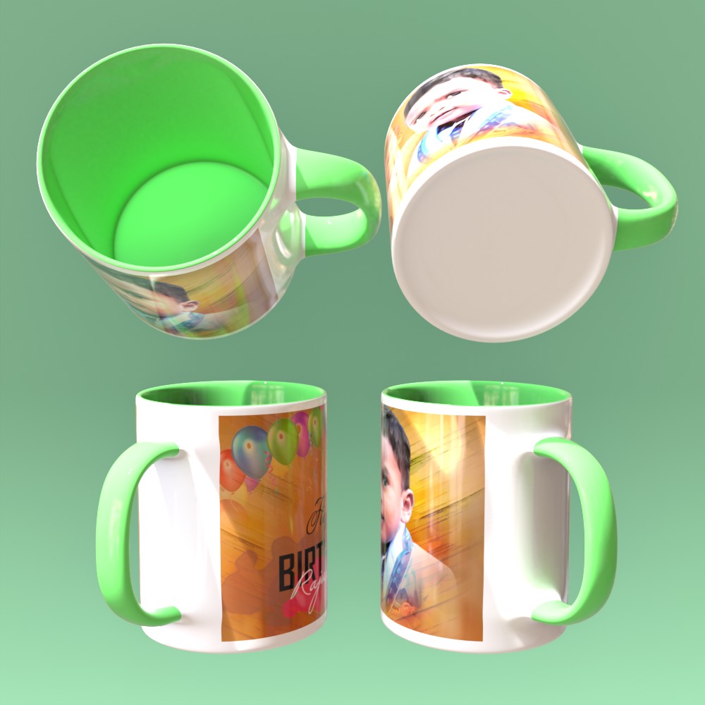 Celebrate special moments with our TPD62RHM7 Green Round Handle Mug, thoughtfully designed for kids surprises. This elegant and sturdy ceramic mug is perfect for showcasing your unique memories with custom photo and text printing options. Whether it's a heartfelt birthday wish, an anniversary date, or a fun cartoon for kids, your designs will shine on this glossy finish. The ergonomic round handle ensures a comfortable grip, making it a daily favorite for sipping tea, coffee, or hot chocolate. Ideal for gifting or daily use, our mugs are microwave and dishwasher safe, ensuring long-lasting prints and durability. Customize it with your artwork or a favorite quote to turn a simple mug into a cherished keepsake. Make every sip memorable with a gift that blends function, creativity, and emotion. Order now and create a personalized treasure that delights every time!