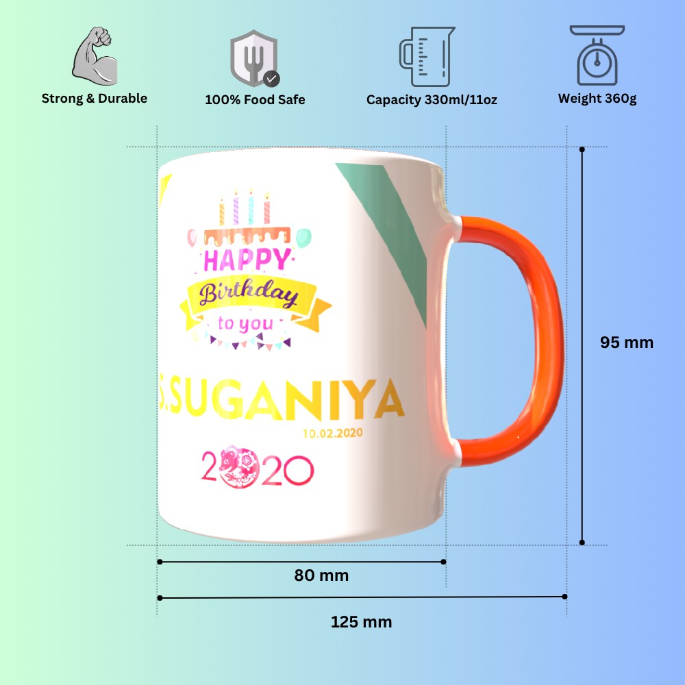 Celebrate special moments with our TPD56RHM3 Orange Round Handle Mug, thoughtfully designed for kids surprises. This elegant and sturdy ceramic mug is perfect for showcasing your unique memories with custom photo and text printing options. Whether it's a heartfelt birthday wish, an anniversary date, or a fun cartoon for kids, your designs will shine on this glossy finish. The ergonomic round handle ensures a comfortable grip, making it a daily favorite for sipping tea, coffee, or hot chocolate. Ideal for gifting or daily use, our mugs are microwave and dishwasher safe, ensuring long-lasting prints and durability. Customize it with your artwork or a favorite quote to turn a simple mug into a cherished keepsake. Make every sip memorable with a gift that blends function, creativity, and emotion. Order now and create a personalized treasure that delights every time!