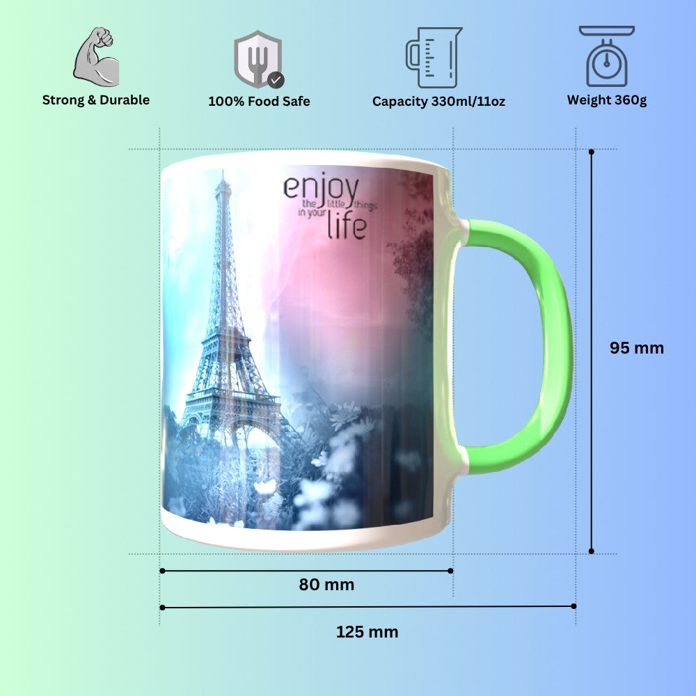 Celebrate special moments with our TPD103RHM7 Green Round Handle Mug, thoughtfully designed for anniversary surprises. This elegant and sturdy ceramic mug is perfect for showcasing your unique memories with custom photo and text printing options. Whether it's a heartfelt birthday wish, an anniversary date, or a fun cartoon for kids, your designs will shine on this glossy finish. The ergonomic round handle ensures a comfortable grip, making it a daily favorite for sipping tea, coffee, or hot chocolate. Ideal for gifting or daily use, our mugs are microwave and dishwasher safe, ensuring long-lasting prints and durability. Customize it with your artwork or a favorite quote to turn a simple mug into a cherished keepsake. Make every sip memorable with a gift that blends function, creativity, and emotion. Order now and create a personalized treasure that delights every time!
