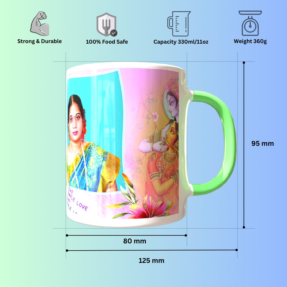 Celebrate special moments with our TPD108RHM7 Green Round Handle Mug, thoughtfully designed for anniversary surprises. This elegant and sturdy ceramic mug is perfect for showcasing your unique memories with custom photo and text printing options. Whether it's a heartfelt birthday wish, an anniversary date, or a fun cartoon for kids, your designs will shine on this glossy finish. The ergonomic round handle ensures a comfortable grip, making it a daily favorite for sipping tea, coffee, or hot chocolate. Ideal for gifting or daily use, our mugs are microwave and dishwasher safe, ensuring long-lasting prints and durability. Customize it with your artwork or a favorite quote to turn a simple mug into a cherished keepsake. Make every sip memorable with a gift that blends function, creativity, and emotion. Order now and create a personalized treasure that delights every time!