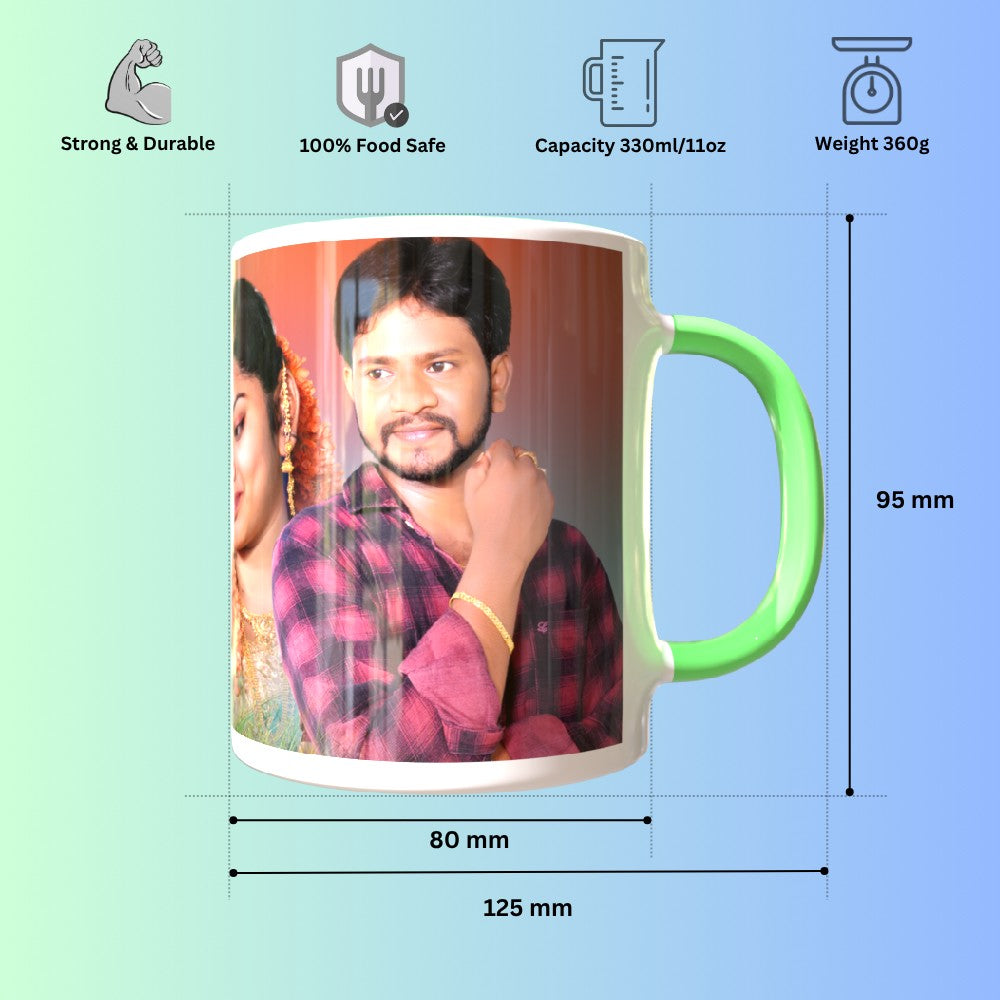 Celebrate special moments with our TPD87RHM7 Green Round Handle Mug, thoughtfully designed for anniversary surprises. This elegant and sturdy ceramic mug is perfect for showcasing your unique memories with custom photo and text printing options. Whether it's a heartfelt birthday wish, an anniversary date, or a fun cartoon for kids, your designs will shine on this glossy finish. The ergonomic round handle ensures a comfortable grip, making it a daily favorite for sipping tea, coffee, or hot chocolate. Ideal for gifting or daily use, our mugs are microwave and dishwasher safe, ensuring long-lasting prints and durability. Customize it with your artwork or a favorite quote to turn a simple mug into a cherished keepsake. Make every sip memorable with a gift that blends function, creativity, and emotion. Order now and create a personalized treasure that delights every time!