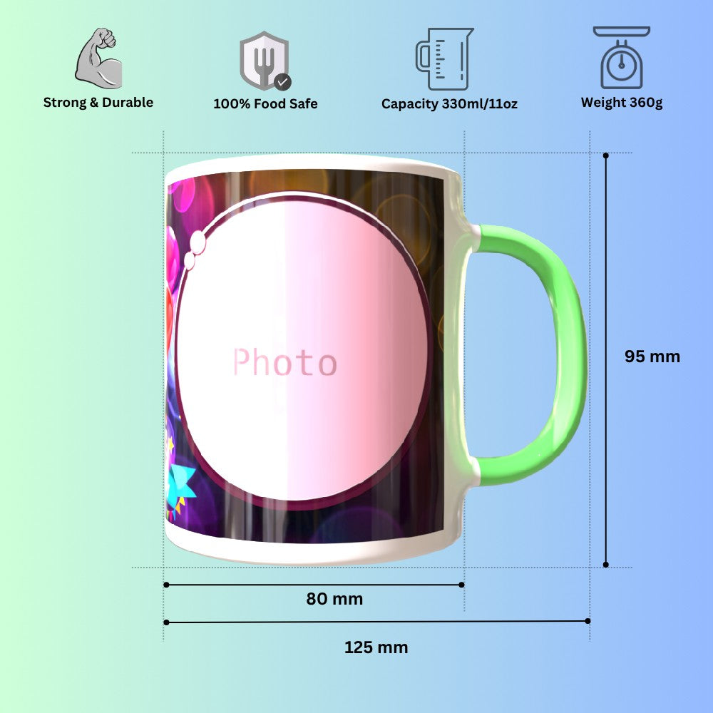 Celebrate special moments with our TPD16RHM7 Green Round Handle Mug, thoughtfully designed for birthday surprises. This elegant and sturdy ceramic mug is perfect for showcasing your unique memories with custom photo and text printing options. Whether it's a heartfelt birthday wish, an anniversary date, or a fun cartoon for kids, your designs will shine on this glossy finish. The ergonomic round handle ensures a comfortable grip, making it a daily favorite for sipping tea, coffee, or hot chocolate. Ideal for gifting or daily use, our mugs are microwave and dishwasher safe, ensuring long-lasting prints and durability. Customize it with your artwork or a favorite quote to turn a simple mug into a cherished keepsake. Make every sip memorable with a gift that blends function, creativity, and emotion. Order now and create a personalized treasure that delights every time!