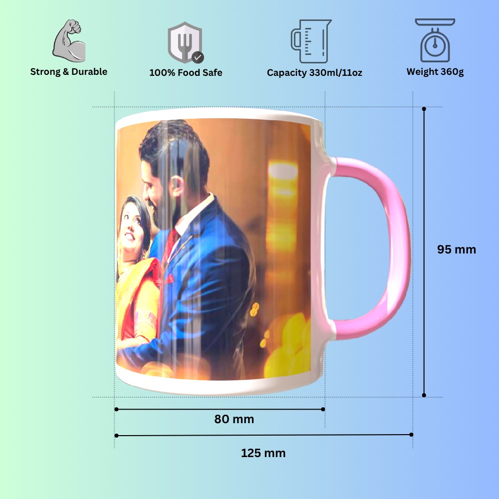 Celebrate special moments with our TPD79RHM10 Pink Round Handle Mug, thoughtfully designed for anniversary surprises. This elegant and sturdy ceramic mug is perfect for showcasing your unique memories with custom photo and text printing options. Whether it's a heartfelt birthday wish, an anniversary date, or a fun cartoon for kids, your designs will shine on this glossy finish. The ergonomic round handle ensures a comfortable grip, making it a daily favorite for sipping tea, coffee, or hot chocolate. Ideal for gifting or daily use, our mugs are microwave and dishwasher safe, ensuring long-lasting prints and durability. Customize it with your artwork or a favorite quote to turn a simple mug into a cherished keepsake. Make every sip memorable with a gift that blends function, creativity, and emotion. Order now and create a personalized treasure that delights every time!