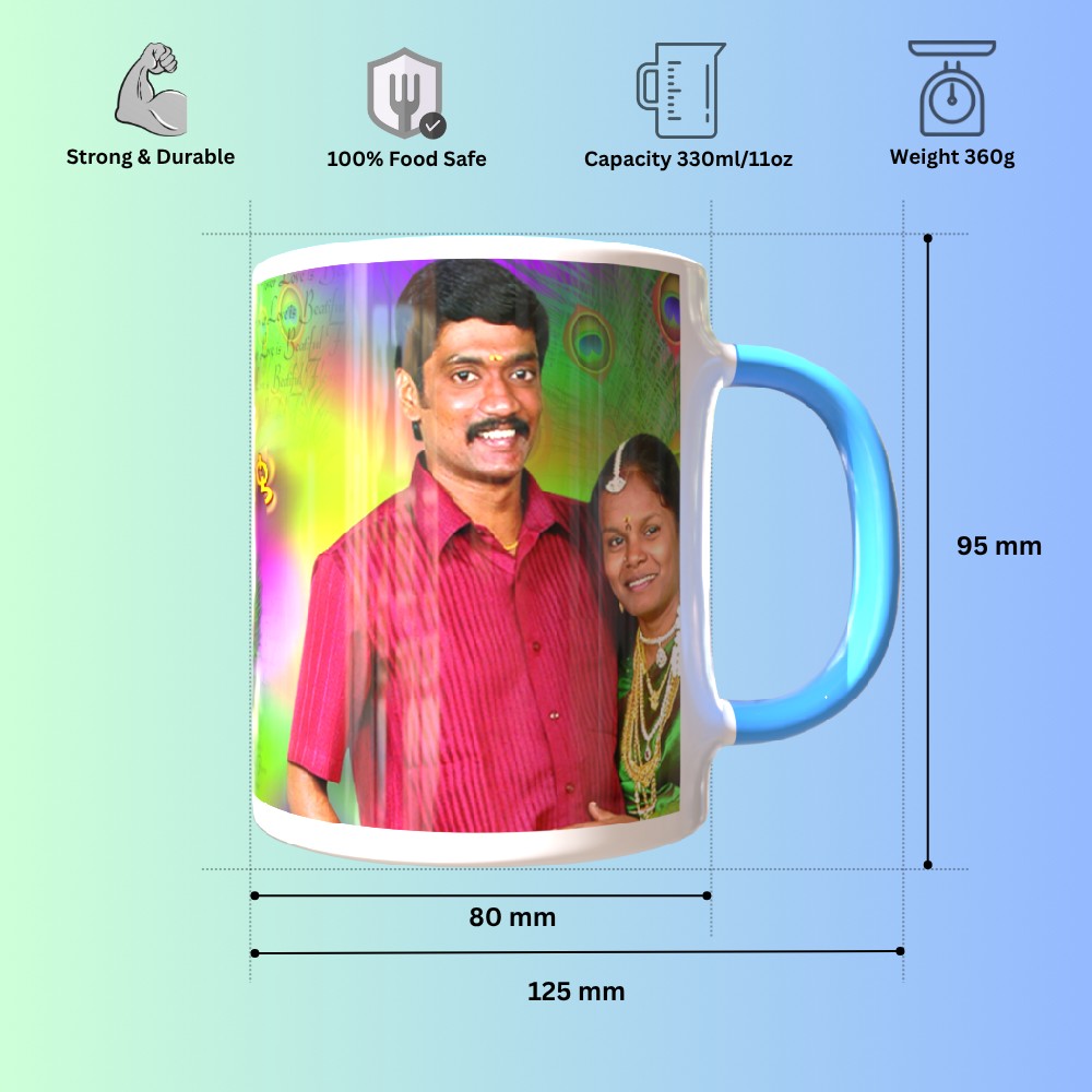 Celebrate special moments with our TPD110RHM4 Sky Blue Round Handle Mug, thoughtfully designed for anniversary surprises. This elegant and sturdy ceramic mug is perfect for showcasing your unique memories with custom photo and text printing options. Whether it's a heartfelt birthday wish, an anniversary date, or a fun cartoon for kids, your designs will shine on this glossy finish. The ergonomic round handle ensures a comfortable grip, making it a daily favorite for sipping tea, coffee, or hot chocolate. Ideal for gifting or daily use, our mugs are microwave and dishwasher safe, ensuring long-lasting prints and durability. Customize it with your artwork or a favorite quote to turn a simple mug into a cherished keepsake. Make every sip memorable with a gift that blends function, creativity, and emotion. Order now and create a personalized treasure that delights every time!