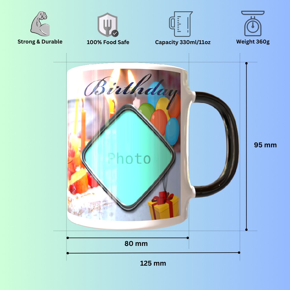 Celebrate special moments with our TPD2RHM11 Black Round Handle Mug, thoughtfully designed for birthday surprises. This elegant and sturdy ceramic mug is perfect for showcasing your unique memories with custom photo and text printing options. Whether it's a heartfelt birthday wish, an anniversary date, or a fun cartoon for kids, your designs will shine on this glossy finish. The ergonomic round handle ensures a comfortable grip, making it a daily favorite for sipping tea, coffee, or hot chocolate. Ideal for gifting or daily use, our mugs are microwave and dishwasher safe, ensuring long-lasting prints and durability. Customize it with your artwork or a favorite quote to turn a simple mug into a cherished keepsake. Make every sip memorable with a gift that blends function, creativity, and emotion. Order now and create a personalized treasure that delights every time!