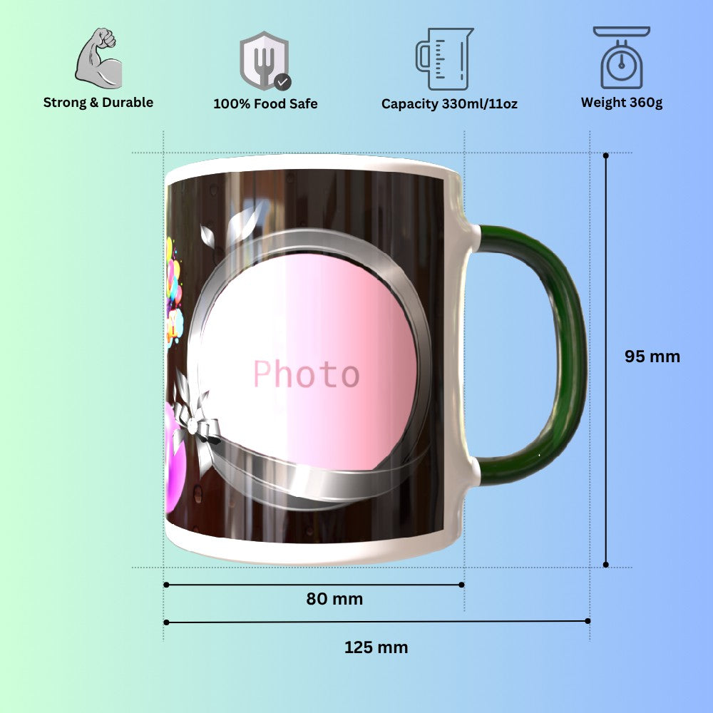 Celebrate special moments with our TPD17RHM8 Dark Green Round Handle Mug, thoughtfully designed for birthday surprises. This elegant and sturdy ceramic mug is perfect for showcasing your unique memories with custom photo and text printing options. Whether it's a heartfelt birthday wish, an anniversary date, or a fun cartoon for kids, your designs will shine on this glossy finish. The ergonomic round handle ensures a comfortable grip, making it a daily favorite for sipping tea, coffee, or hot chocolate. Ideal for gifting or daily use, our mugs are microwave and dishwasher safe, ensuring long-lasting prints and durability. Customize it with your artwork or a favorite quote to turn a simple mug into a cherished keepsake. Make every sip memorable with a gift that blends function, creativity, and emotion. Order now and create a personalized treasure that delights every time!